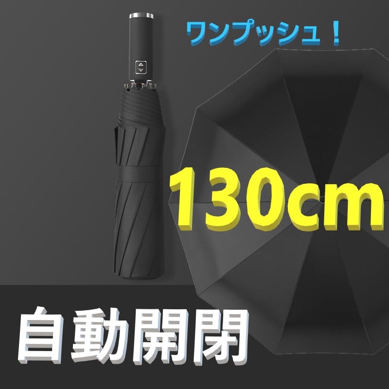 話題の 自動開閉 ワンタッチ 折り畳み傘 特大 130cm 10本骨 【F-266 ブラック】 晴雨兼用 日傘 雨傘 梅雨 大きいサイズ