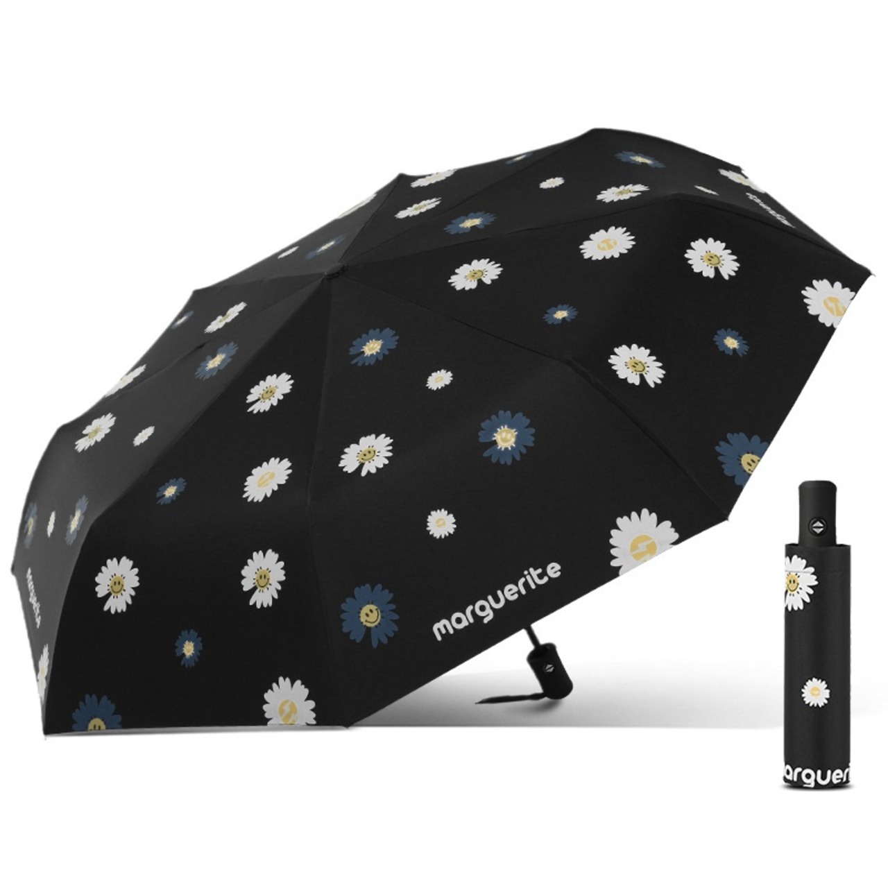 F-345-bk 話題の 自動開閉 ワンタッチ 折り畳み傘 フラワー 花柄 【F-345 ブラック】 軽量 晴雨兼用 日傘 雨傘 梅雨 開くのも閉じるのもワンプッシュ!