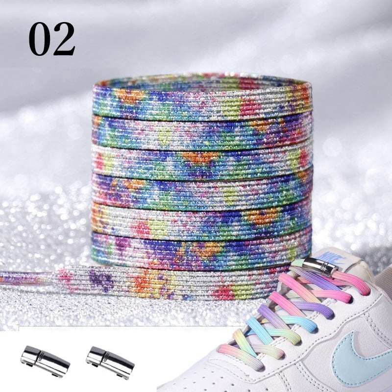 D-227-mg-02 シューレース シャイニー 靴ひも ワンタッチ マグネット 【02】 おしゃれ スニーカー ラメ 紐 ゴム紐 伸びる 結ばない くつひも 伸縮 カラフル レインボー 結ばない靴紐 | DreamRoom BASE