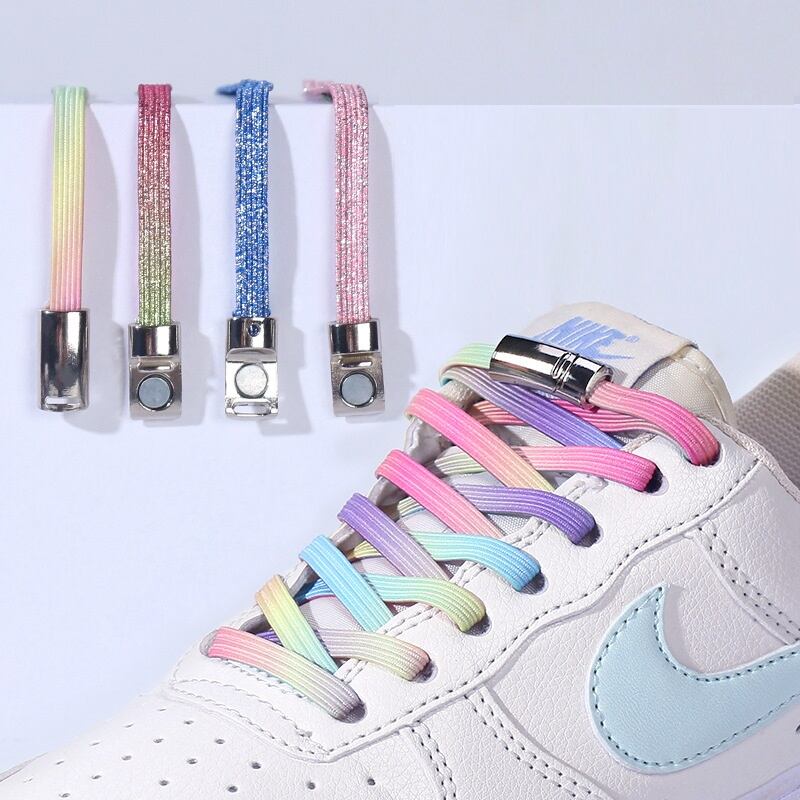 D-227-mg-blbk シューレース シャイニー 靴ひも ワンタッチ マグネット 【ブルー&ブラック】 おしゃれ スニーカー ラメ 紐 ゴム紐 伸びる 結ばない くつひも 伸縮 カラフル レインボー 結ばない靴紐 | DreamRoom BASE
