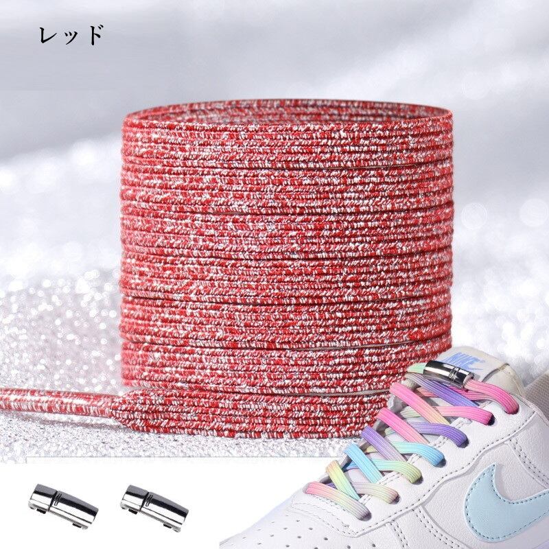 D-227-mg-rd シューレース シャイニー 靴ひも ワンタッチ マグネット 【レッド】 おしゃれ スニーカー ラメ 紐 ゴム紐 伸びる 結ばない くつひも 伸縮 カラフル レインボー 結ばない靴紐 | DreamRoom BASE
