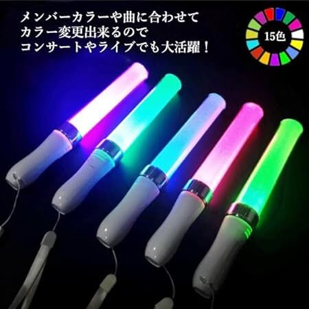 L-066-01 25cm 繰り返し使える LED ペンライト 15色 電池タイプ ストラップ付き イベント コンサート サイリウム コンサートライト カラーチェンジ 再利用 防災 ライト 切り替え可能な15カラーの イルミネーション | DreamRoom BASE