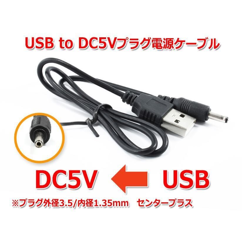入力側はUSB A-TYPE オス、出力側はDCプラグ 外径3.5mm/内径1.35mmです。