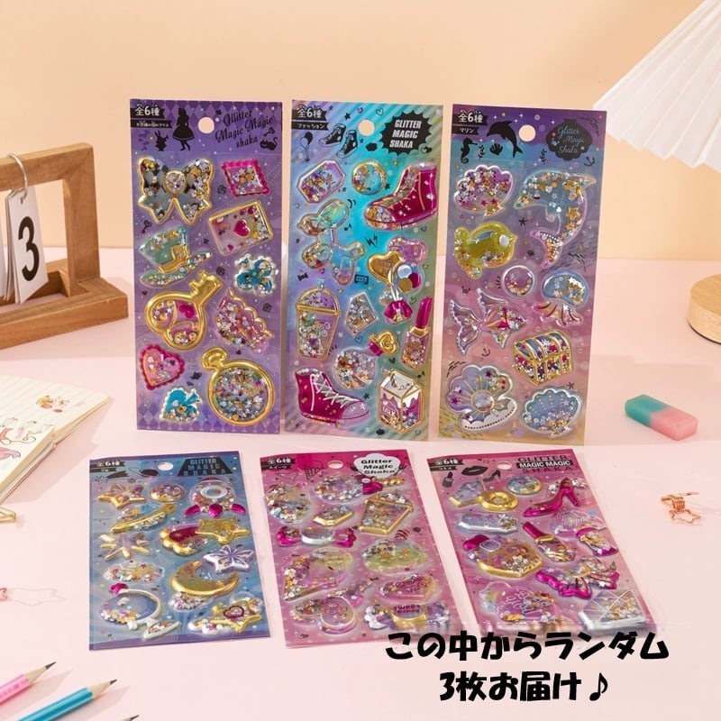 ぷくぷくシール×きらきらフレーク 3枚setです。