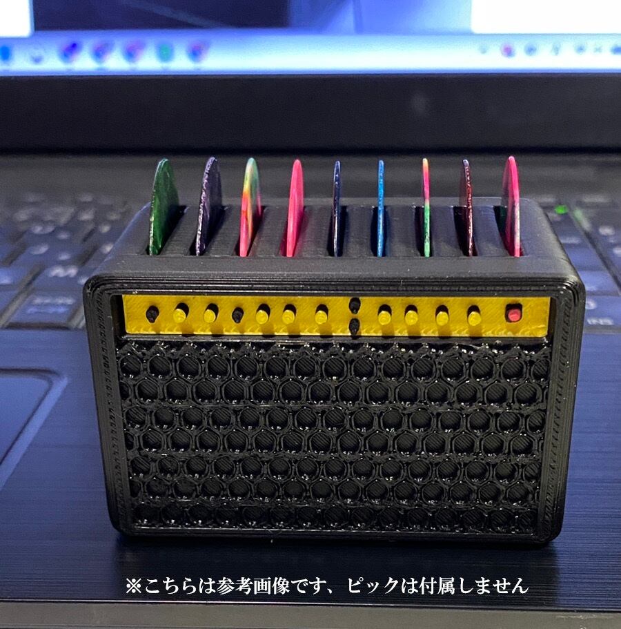 ピックの紛失を防ぎながら、置き型の収納で手軽に使える点がポイント!自宅での練習はもちろん、ライブ前の準備にも大活躍します。アンプ型のデザインは、ギターや音楽の趣味を持つ方への贈り物にも最適な一品です。