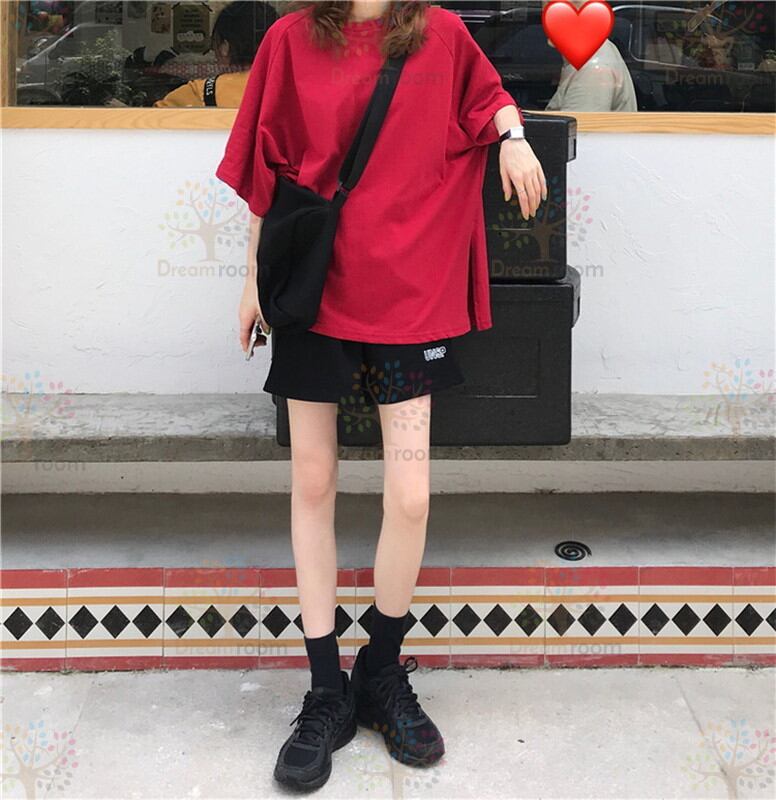 ユルっと可愛い!ミドル丈 simple 無地 ビッグTシャツ 【レッド L】 大きいサイズ トップス チュニック 体型カバー 半袖 K-322