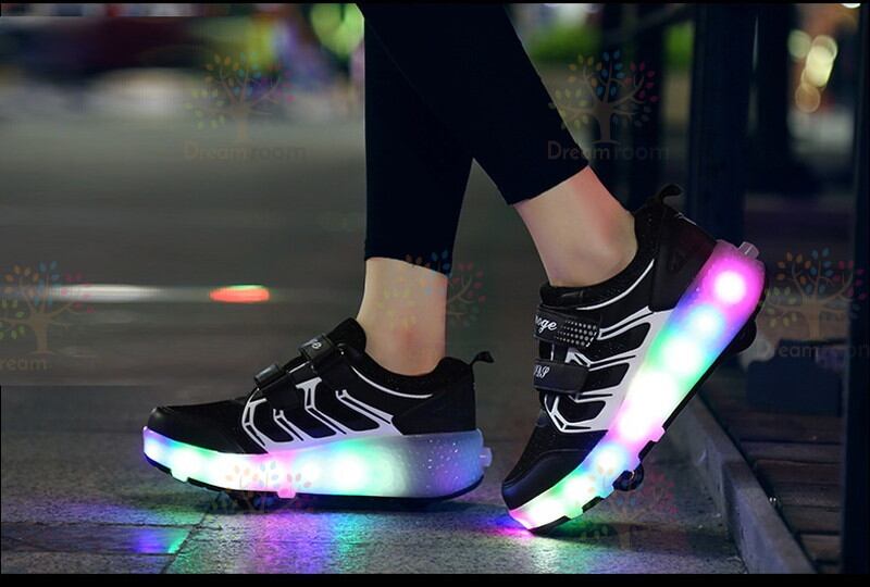 光る☆LED ライトアップスニーカー&ローラーシューズ 一体型 【K-373ブラック 23cm】夜間 スケート靴 反射材 ジョギング 自転車