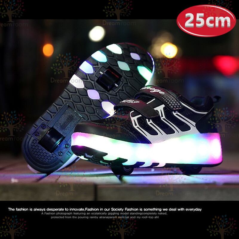光る☆LED ライトアップスニーカー&ローラーシューズ 一体型 【K-373ブラック 25cm】夜間 スケート靴 反射材 ジョギング 自転車