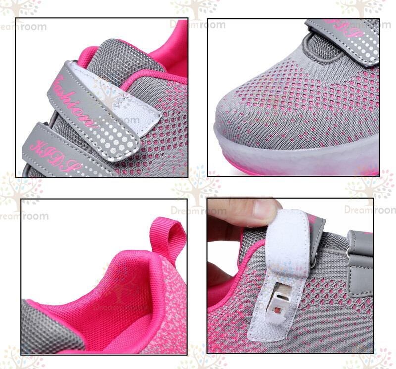 光る☆LED ライトアップスニーカー&ローラーシューズ 一体型 【K-375ピンク 20.5cm】夜間 スケート靴 反射材 ジョギング 自転車