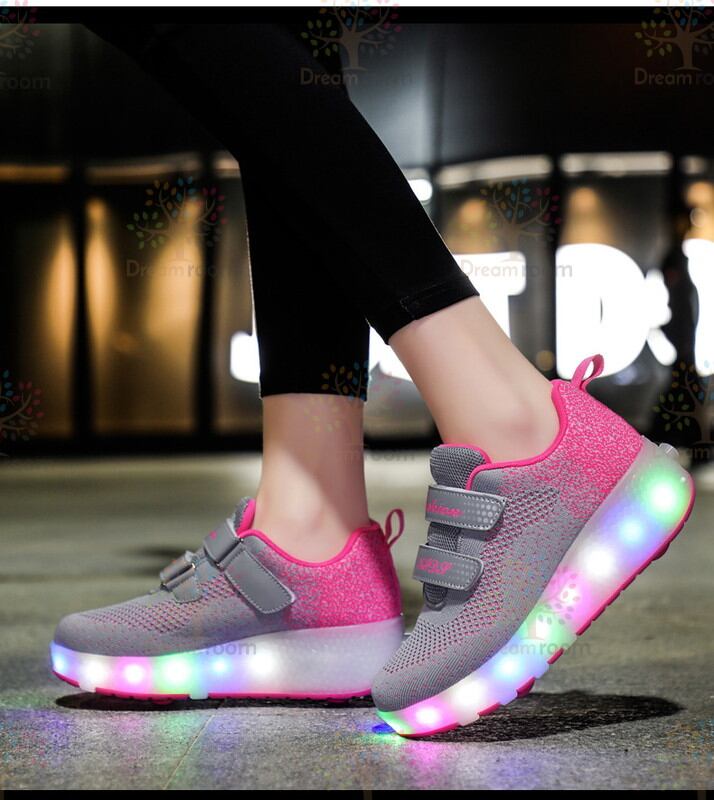 光る☆LED ライトアップスニーカー&ローラーシューズ 一体型 【K-375ピンク 22.5cm】夜間 スケート靴 反射材 ジョギング 自転車