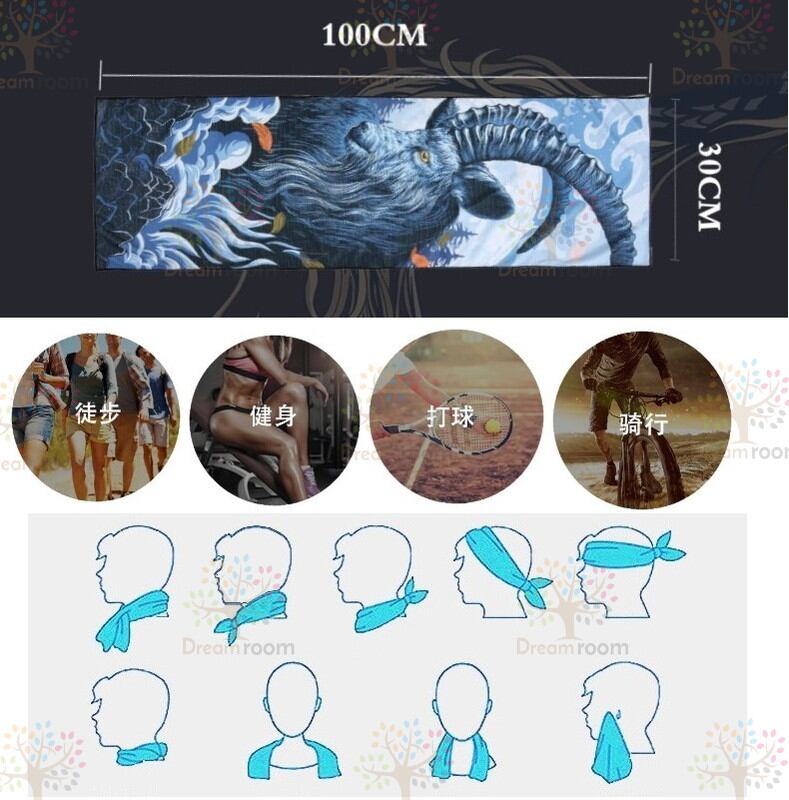 素材:ハイテクポリエステル冷却ファブリックは、濡れたときに平均体温より30度低い温度まで瞬時に冷却します。