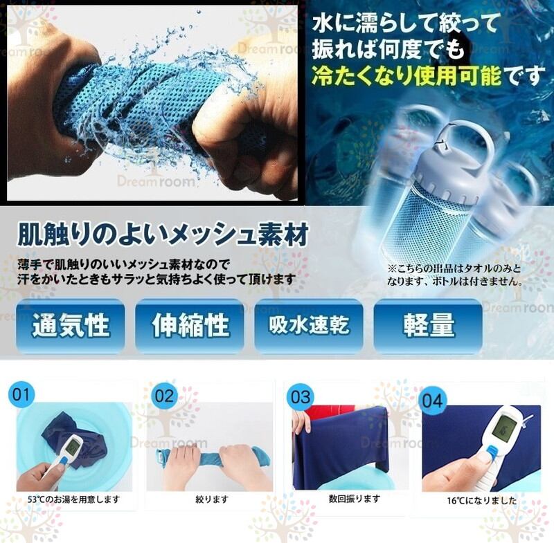 超冷感 デザイン アイスタオル スポーツタオル 熱中症対策 冷却タオル 瞬間冷却 速乾 紫外線カット 超速乾 超吸水 アウトドア F-214-02ひんやりタオル クール ボトル 柄 UVカット | DreamRoom BASE