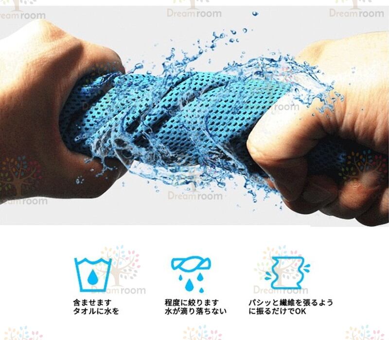 使用方法:タオルを水に浸し、水を絞るだけ!瞬間冷却でき、数時間涼しく保ちます。