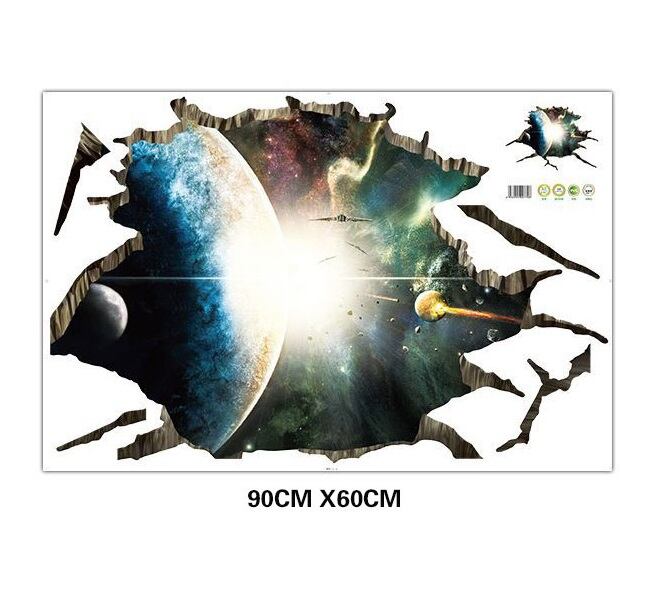 <C118>3D ウォールステッカー 宇宙 小惑星 土星2 夜景 騙し絵 トリックアート はがせる 壁紙 シール 防水 DIY 壁 床 家具 インテリア 天井