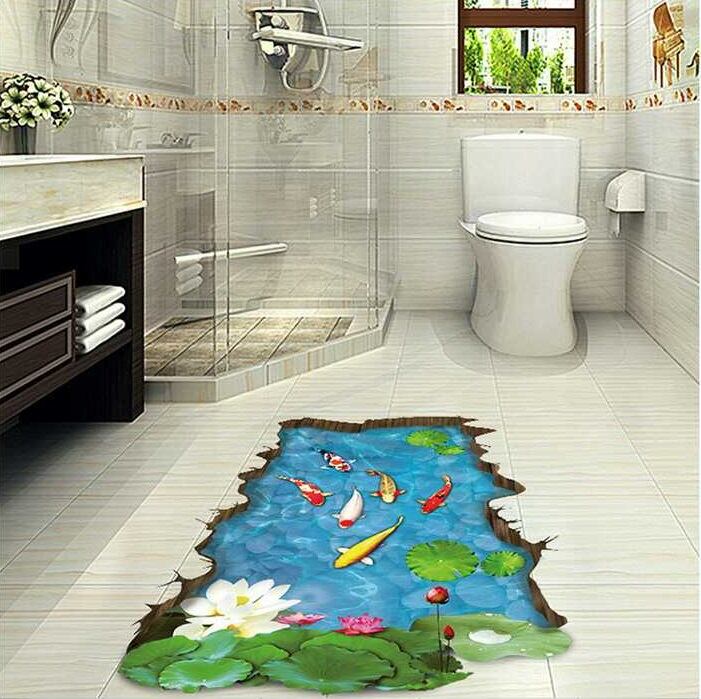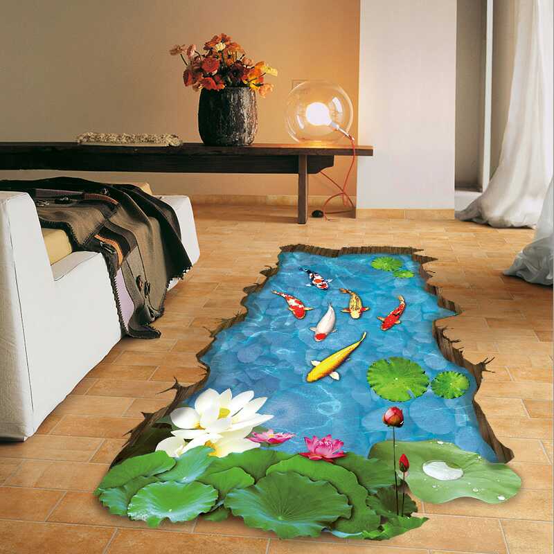 <C126>3D ウォールステッカー 和モダン 形成池4 鯉 騙し絵 トリックアート はがせる 壁紙 シール 防水 DIY 壁 床 家具 インテリア 天井